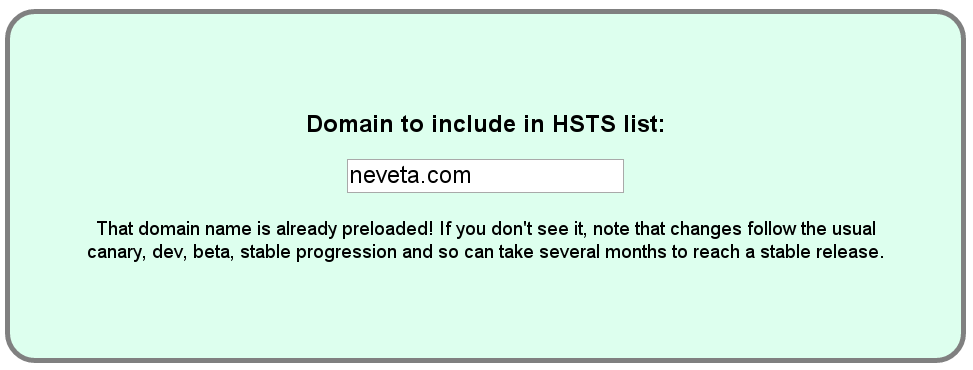 本站已经成功加入 HSTS Preload List,预计几个月之后就可以进 stable 了!