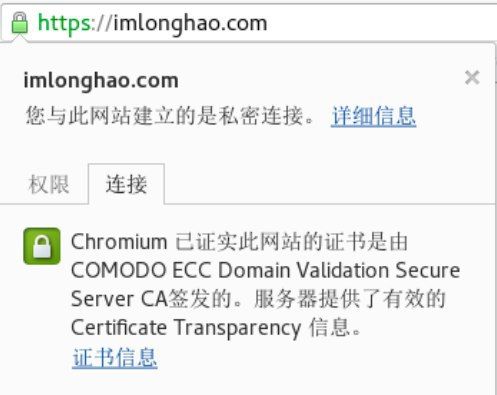 以本站为例,本站的证书是由 COMODO ECC Certification Authority 签发给 COMODO ECC Domain Validation Secure Server CA 最后再签发给我 imlonghao.com