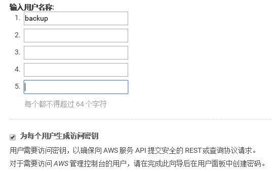 给这个用户设置一个用户名,我这里设置的是 backup ,主要要勾选下面的生成访问密钥