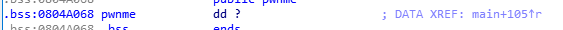 可以知道 pwnme 在内存中的地址为 0x0804A068