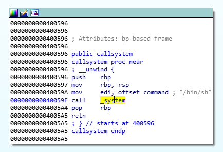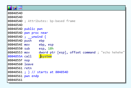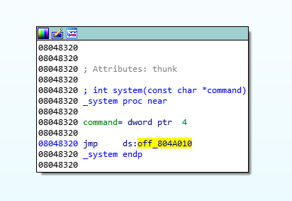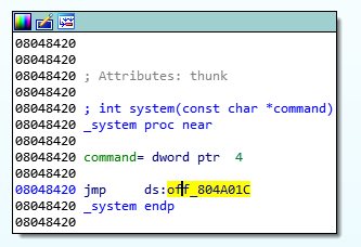 首先确定 system 的地址,双击 pwn 函数中的 _system