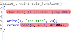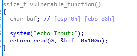 如图,我们需要构造 0x88+4=140 的字符,然后就能覆盖到返回地址,那么,我们这里什么作为返回地址呢?