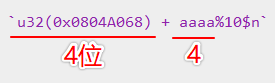 这里除了 p32(0x0804A068) + aaaa%10$n 这种形式我们也可以使用 p32(0x0804A068) + '%4c%10$n 能同样的达到效果