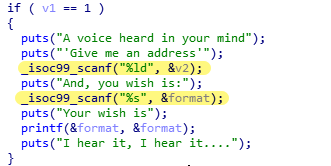 但是,看到上面有一条 printf(&s) 的语句,可以知道这里应该需要用到 格式化字符漏洞