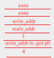 我们相当于是令 fd = 1 / *buf = write_addr / n = 4 (如果是 64 位程序的话 n 为 8)然后执行了一次 write 函数,拿到了其地址。