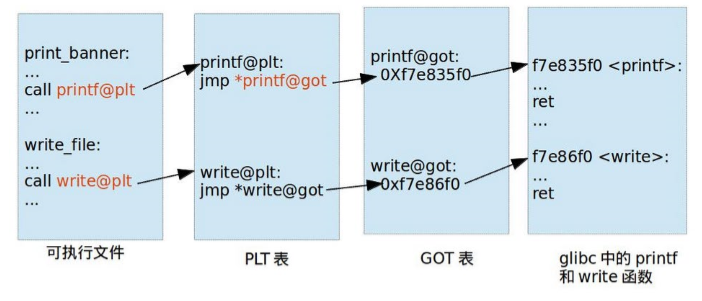 这里就需要知道 plt 和 got 这两个表了,这里简单带过一下,可以参考 彻底搞清楚 GOT 和 PLT - 简书。摘录一部分: