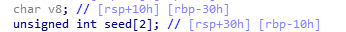 当 gets 超过 0x20 字符时就会溢出开始覆盖 seed 的值,我们可以通过栈溢出固定下来随机数的种子数。