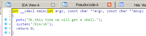 p.sendlineafter('please tell me your name', '/bin/sh')