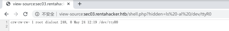 通过 webshell 查看 /dev/ttyR0 文件存在