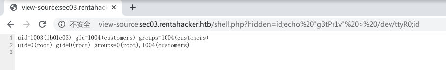 id;echo "g3tPr1v" > /dev/ttyR0;id