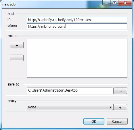 在 url 处输入下载的地址,默认会自动复制粘贴板的内容。如果下载有防盗链之类的,请自行设置 referer