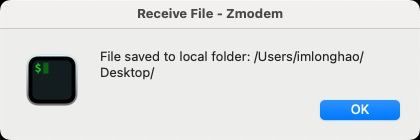 使用支持 ZMODEM 文件传输协议的终端建立链接,就会自动跳下载