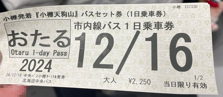 今天计划是要在小樽坐四趟公交,来回小樽水族馆和天狗山之间,于是买了「【小樽発着】小樽天狗山バスセット券(1 日乗車券)」