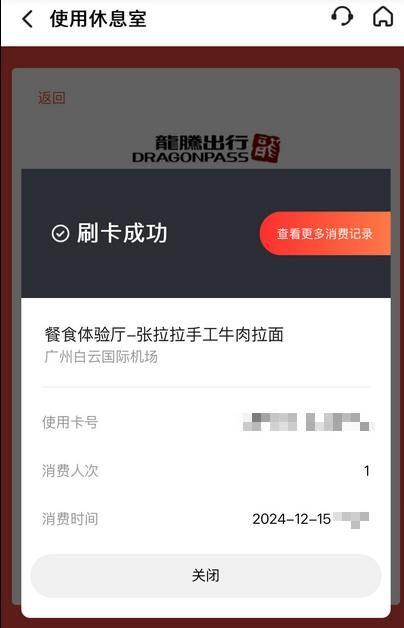 临近中午,机场里面有一个龙腾出行的餐食体验店,刚好我的工行信用卡里还有两点龙腾,月底就过期,刚好可以用上!