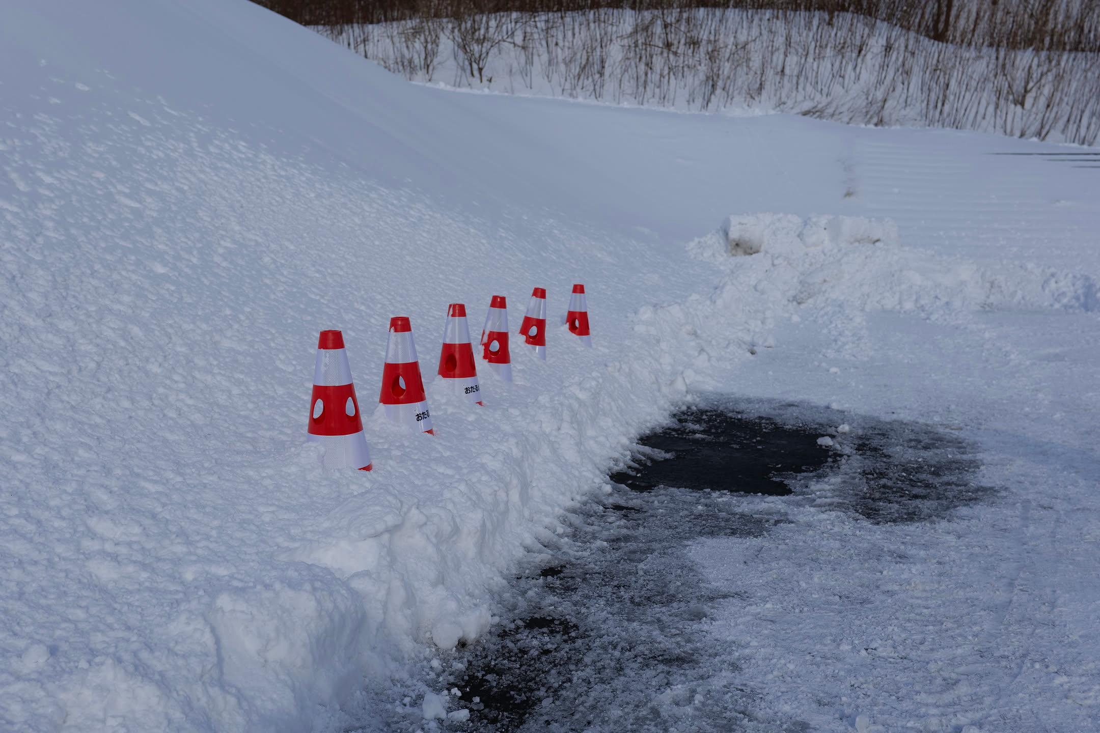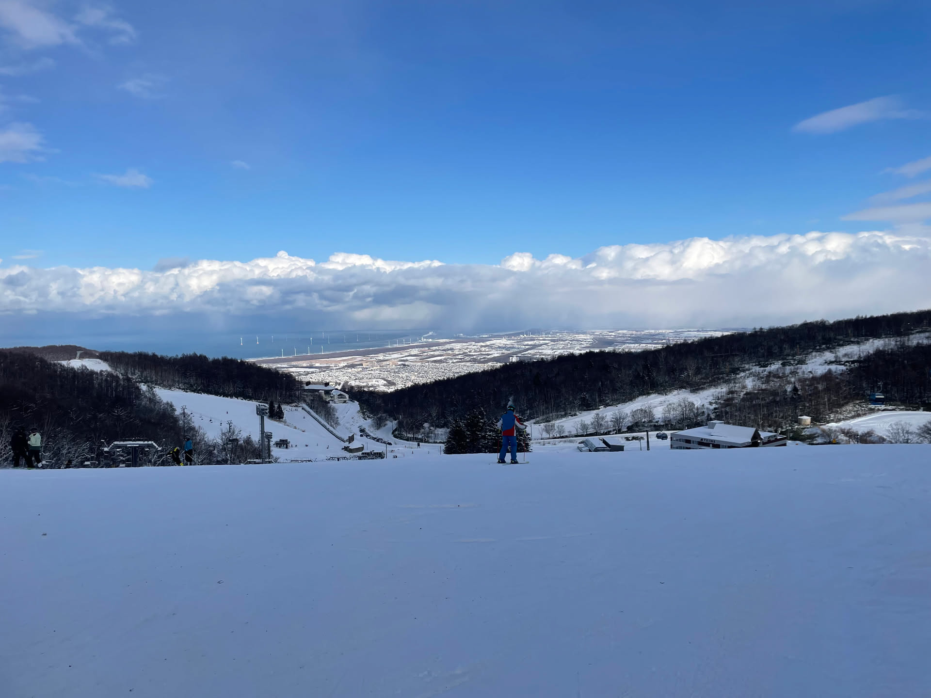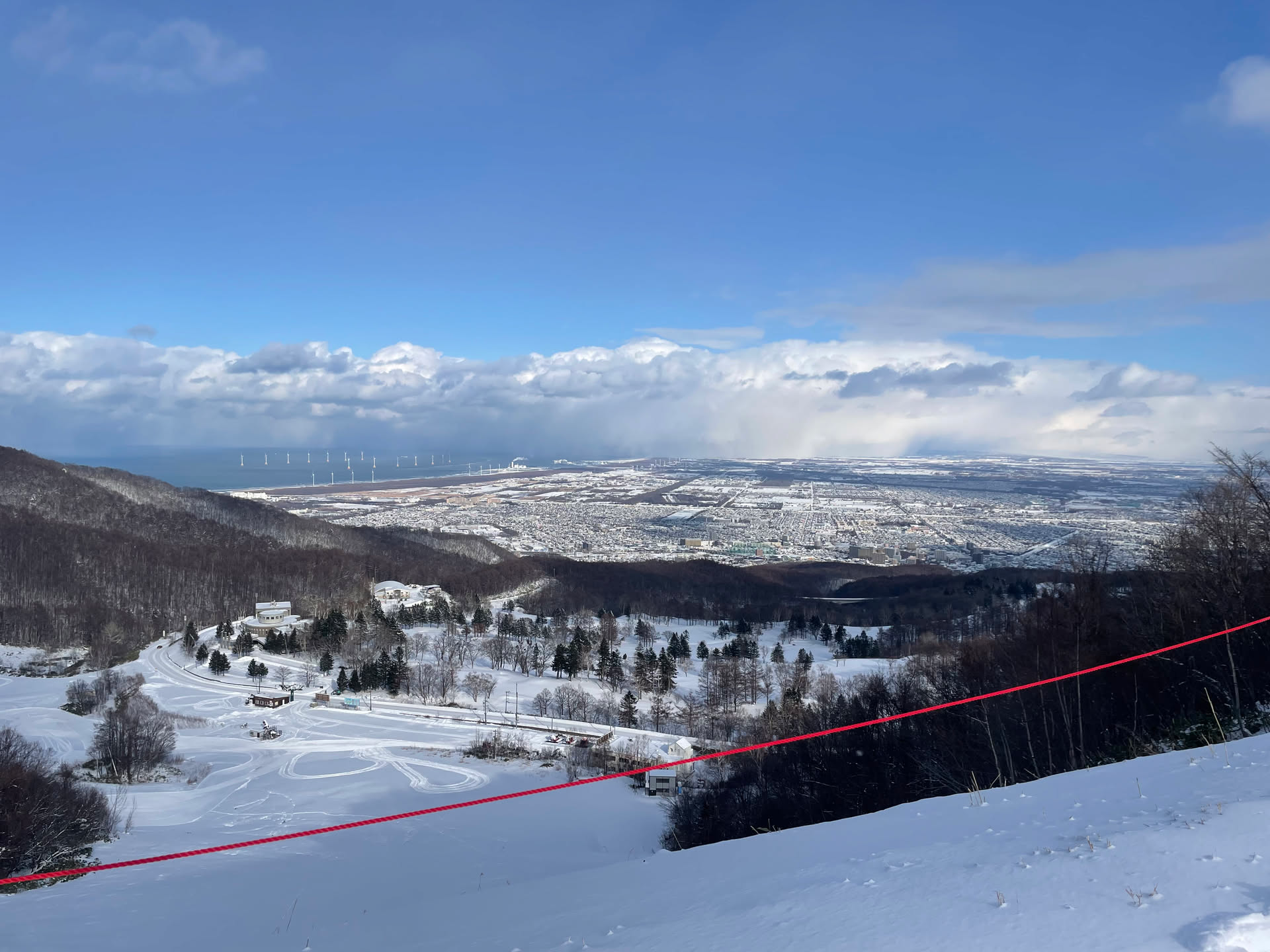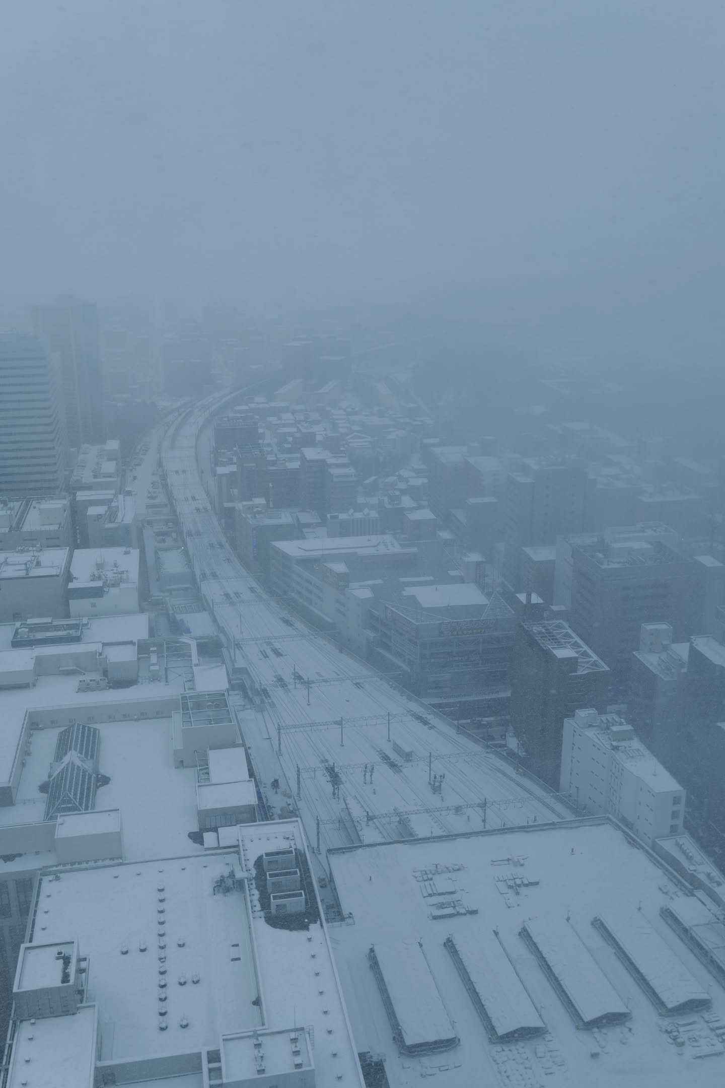 (到了北海道基本上往地面看全部都是白色的一片了)
