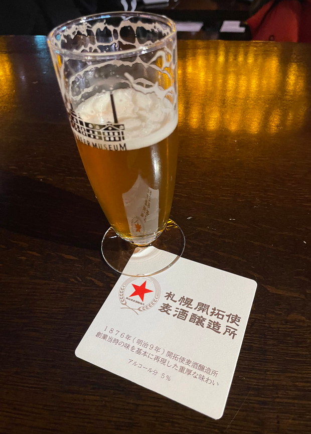 一楼排队买了一杯啤酒,叫做札幌开拓使,我对啤酒没有什么研究,喝了就是喝了。