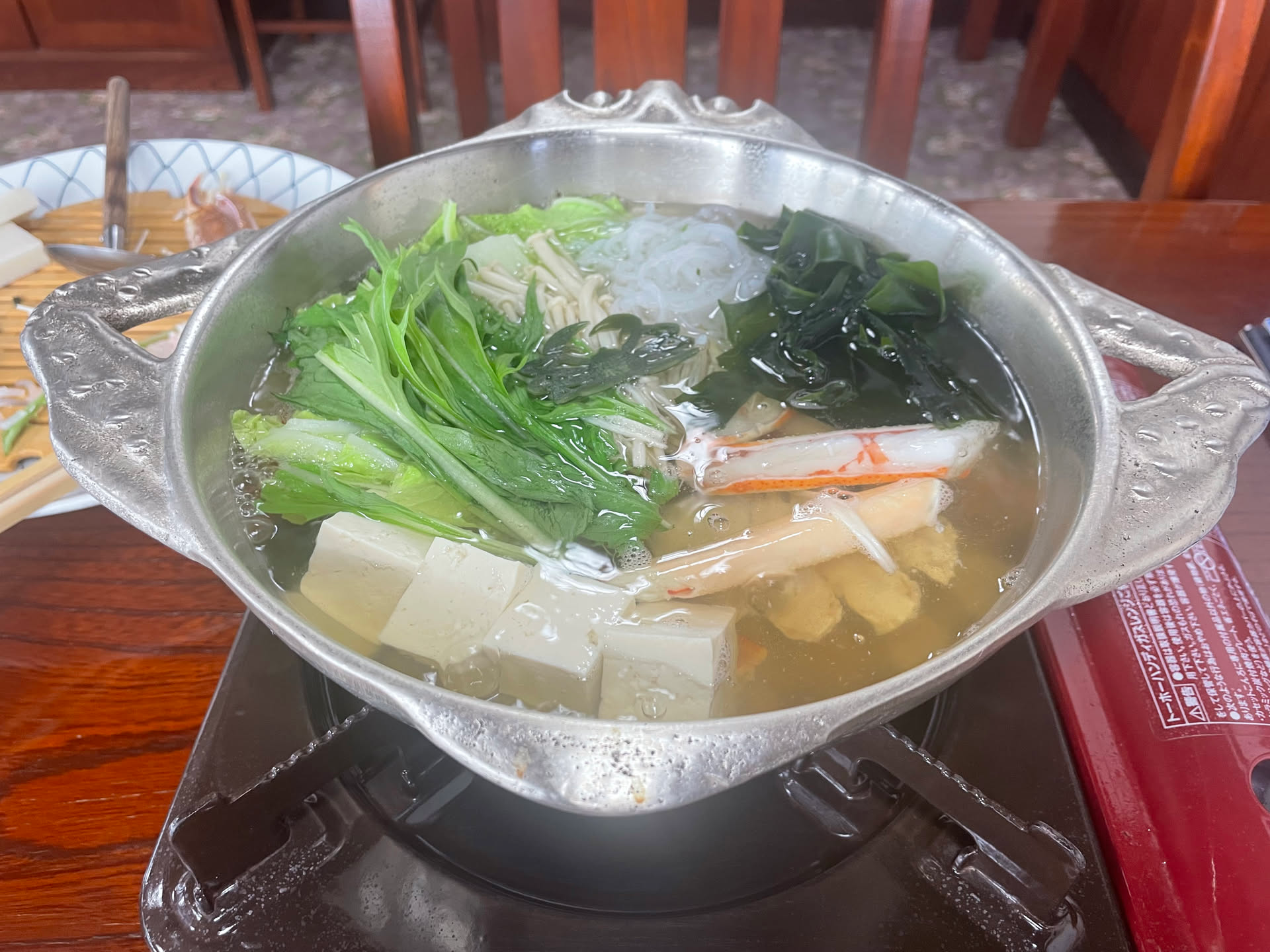 点了一个 ズワイかにすき 和一个饭,前者是一个类似火锅的东西,如下图