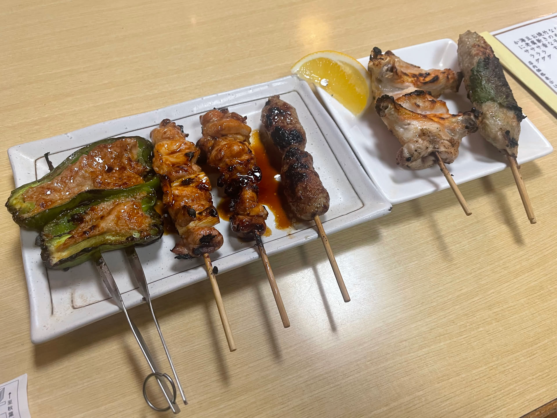 晚饭在酒店旁边找了一家小巷子中的烧鸟店,点了一个套餐(一个人吃饭全点套餐就完事)。