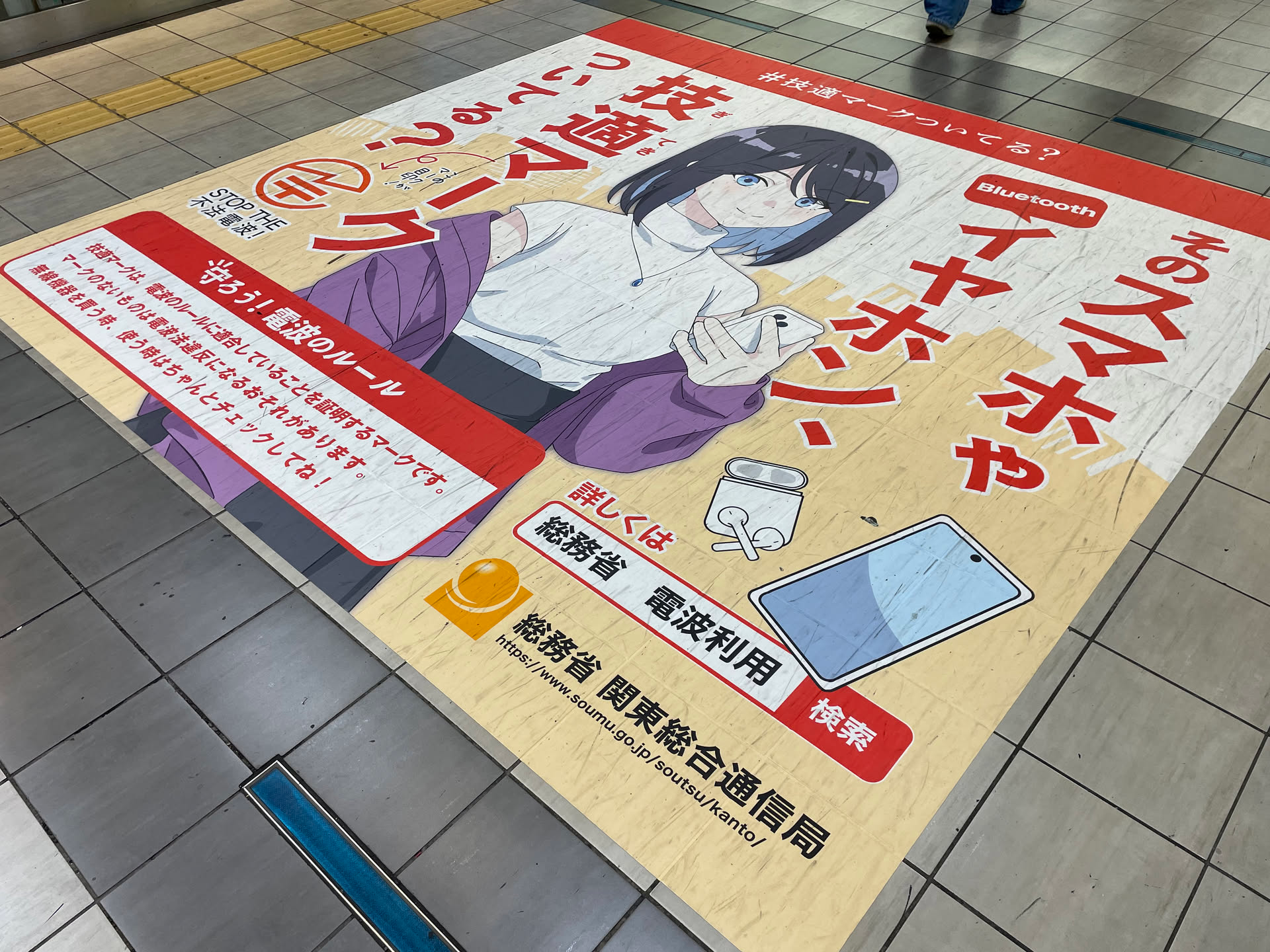在出地铁的时候,看到了地面上贴的总务省关于不法电波的宣传,HAM 表示太熟悉了。