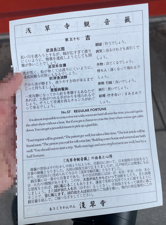 这里就不得不说一下抽签的时候,我一摇那个罐子,直接一次性掉了两三条签到地上,😅 死我了,趁着旁边没人赶紧捡起来塞回去。